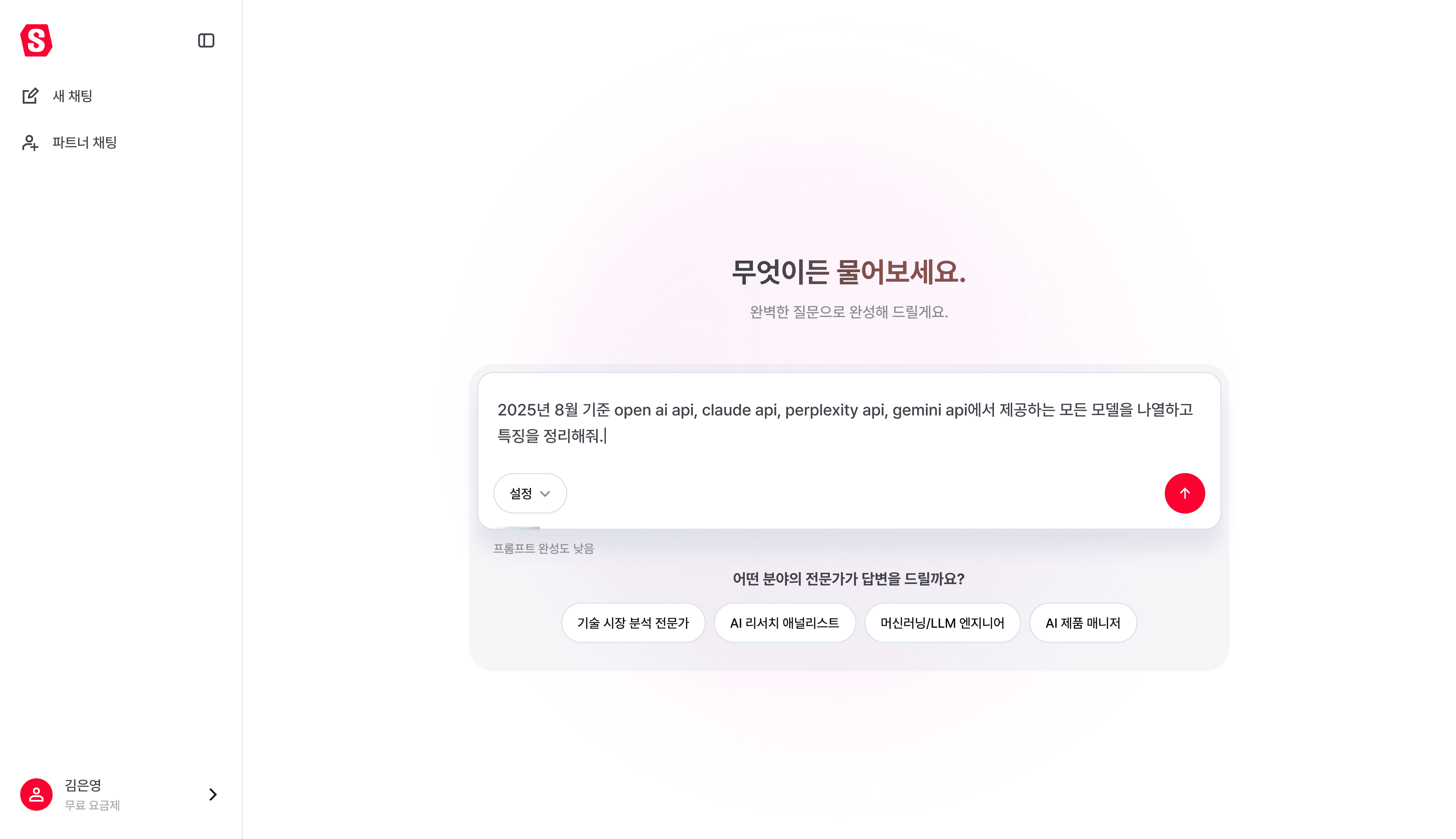 질문만 하세요. 다양한 AI 모델로 최적화된